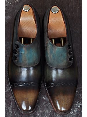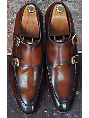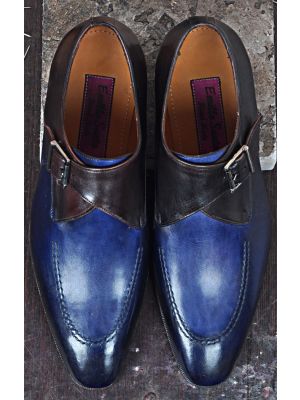 We have an impressive selection to suit your casual and formal wear. Do you want your pair in brown with a shade of black or just plain blue or plain green? Take a look at our selection below. We will also build a custom handmade leather Monk Strap shoe to your specifications.